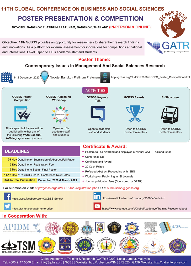 - 11th GCBSS Poster Competition is open to all lecturer/ teacher/ staff/ student in higher education institutions.