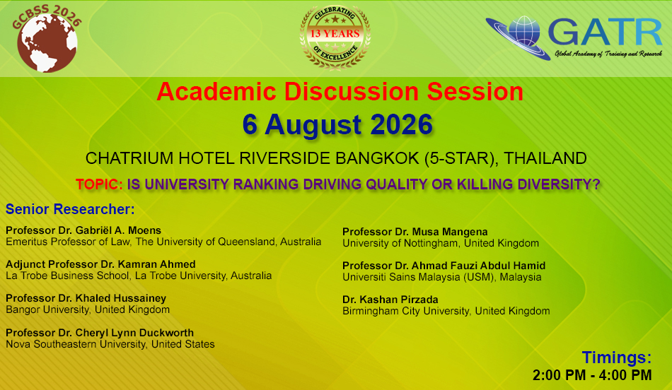 The Academic Discussion Session at GCBSS 2026 invites participants to engage in a lively and critical exchange on the global obsession with university rankings and their growing influence on higher education policy, practice, and perception.