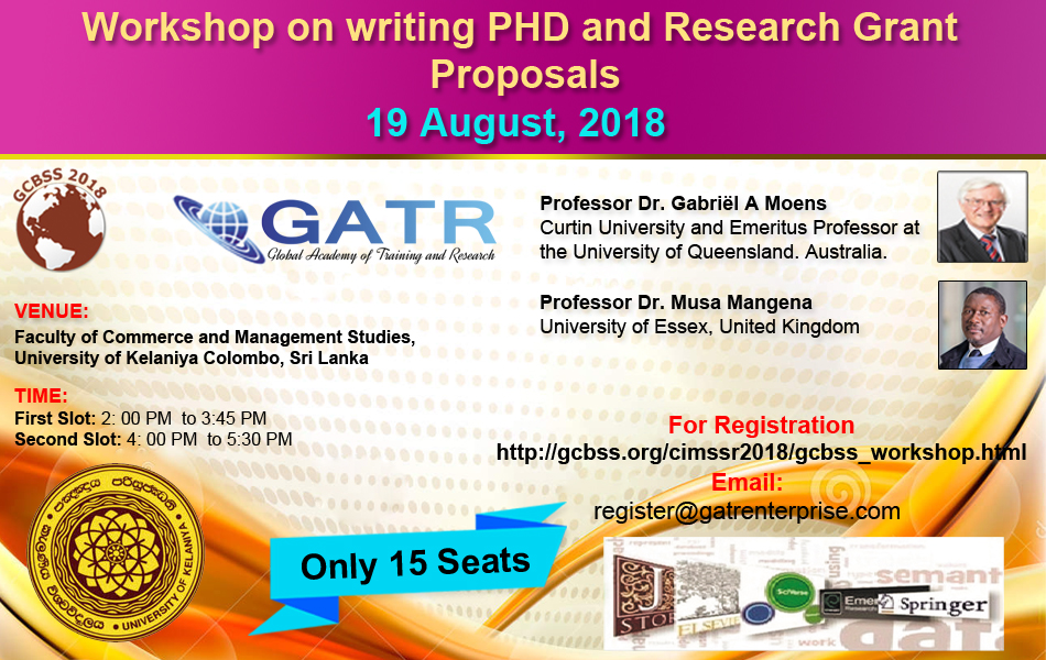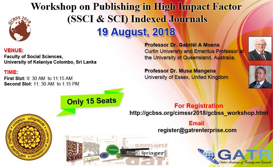 7th GCBSS concurrent events workshop on ''How to Publish in High Impact Factor ISI Journals" and workshop on " Writing PHD & Research Grant Proposal" Please download the respective form for workshop registration and submit it along with payment slip at register@gatrenterprise.com and Cc to admin@gcbss.org