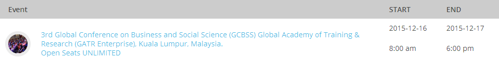 You may cancel without penalty if written cancellation request are received up to and including 45 days prior to the start of the conference. A credit voucher less 50% of the registration fee will be issued for written requests received up to and including 25 days prior to the start of the conference. No refunds or credits will be issued on cancellation requests received less than 25 days prior to the start of the event. No liability is assumed by Global Conference on Business and Social Science for changes in program, date, content, speakers or venue.