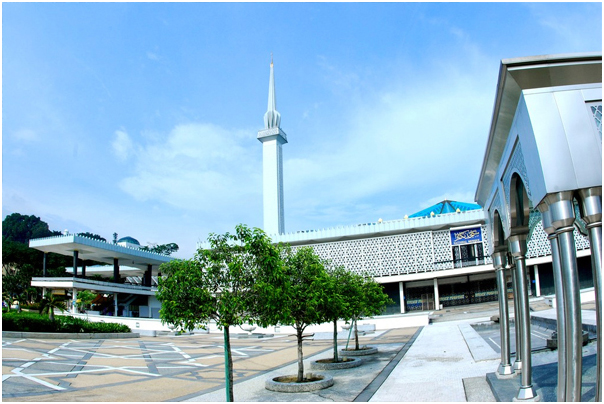 The National Mosque is located right next to the architecturally fabulous old railway station, and just a short walk to the sprawling Lake Gardens and National Monument.
